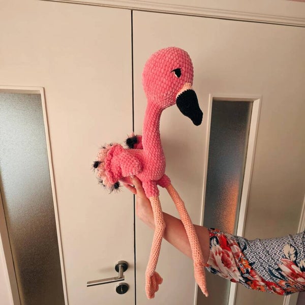 Knuffel dino (met poten inbegrepen 65 cm hoogte) gehaakt met chenillegaren.